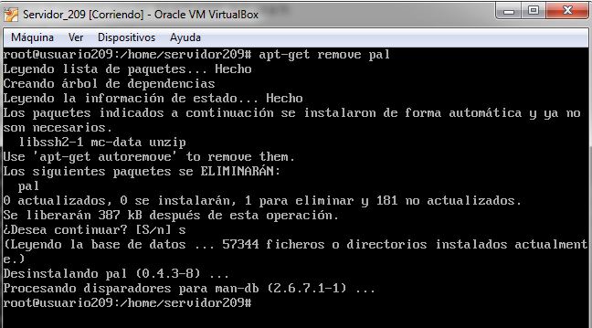 Ahora vamos a eliminar el programa pal apt-get remove pal