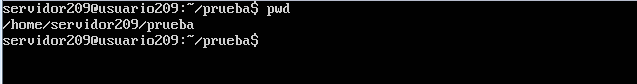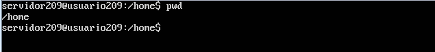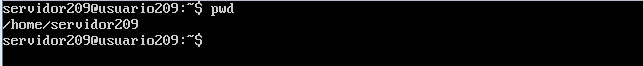 Ahora entramos al directorio servidor209 y ejecutamos el comando pwd en seguida nos mostrara la dirección en donde nos encontramos