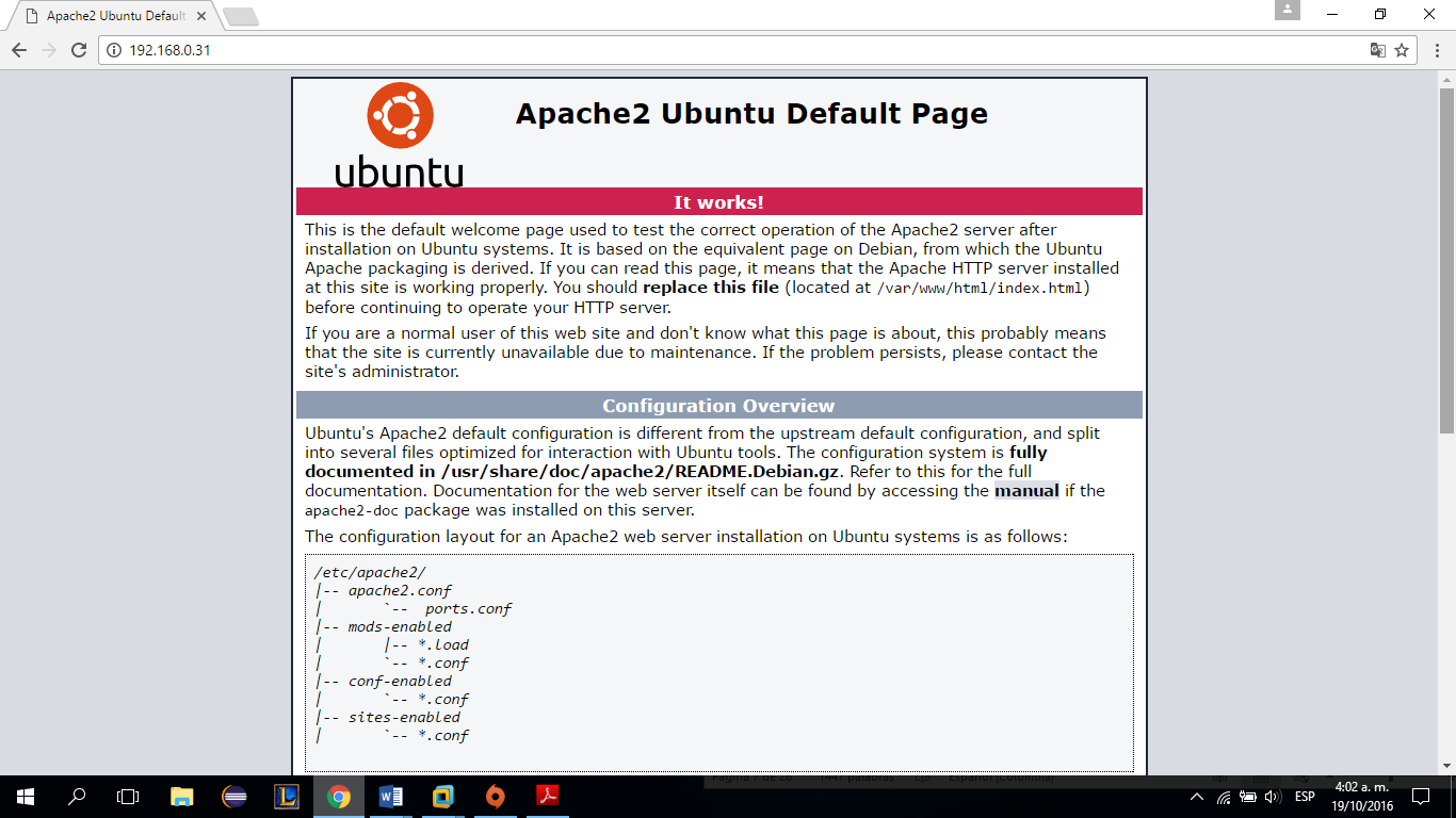 Probamos que el servidor apache esté funcionando digitando la ip